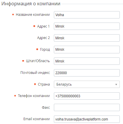 Группа элементов Информация о компании — информация о названии и адресе компании реселлера.
