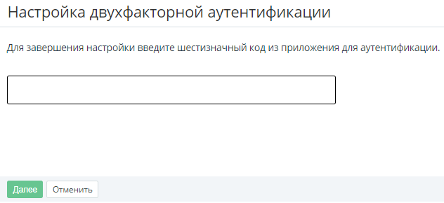 5. Нажмите Далее. Отобразится страница настройки выбранного метода MFA.