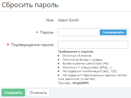 Не используйте пароль, указанный как пример в подсказке. Для автоматической генерации пароля можно использовать кнопку Сгенерировать.