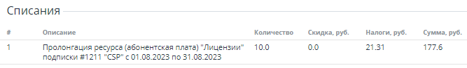 - Количество — количество оплаченных единиц услуги или ресурса (до трех знаков после запятой).