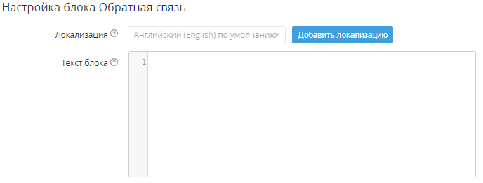 - Текст блока — текст на выбранном языке. Поддерживается использование HTML. По умолчанию поле пустое, и контакты для обратной связи на выбранном языке не отображаются в Панели управления Клиента.