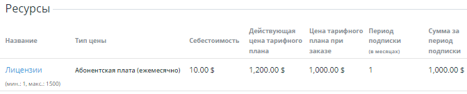 - Цена тарифного плана при заказе — значения стоимостей указанных типов для ресурса, которые были установлены в тарифном плане на момент оформления заказа на покупку (или заказа на продление) подписки и действуют сейчас для подписки.