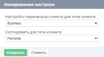 - Во списке Скопировать для типа клиента выберите тип клиента, в который нужно скопировать настройки.