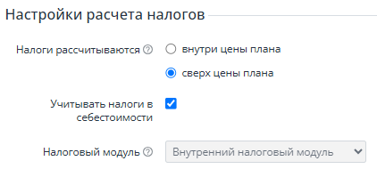 - Сверх цены плана — если все цены в тарифных планах указаны без налогов (по умолчанию):