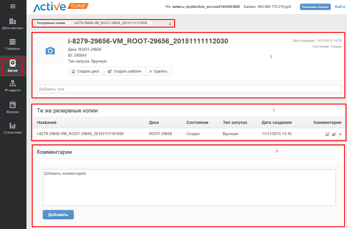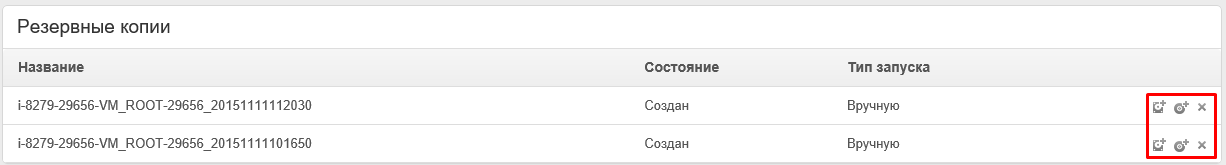 Для того чтобы попасть на страницу администрирования резервной копии диска, нажмите по названию интересующей Вас копию в таблице с общим списком всех копий дисков раздела Диски во вкладке Резервные копии (см. Вкладка «Резервные копии»).