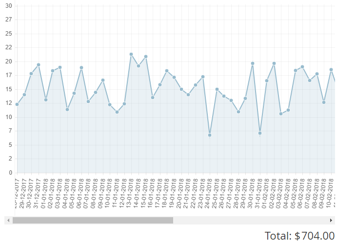 The Charges graphs allows you to see the daily amount of expenses for the selected Resource Groups. Move the mouse pointer to a point on the graph. The screentip with the date and the amount of a daily charge appears.