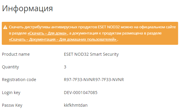 При изменении количества рабочих мест (см. ESET NOD32. Изменение количества Ресурса Подписки) необходимо будет ввести новые лицензионные данные, которые появятся в ESET NOD32. Раздел «Информация», а также будут высланы на электронную почту, указанную при регистрации.