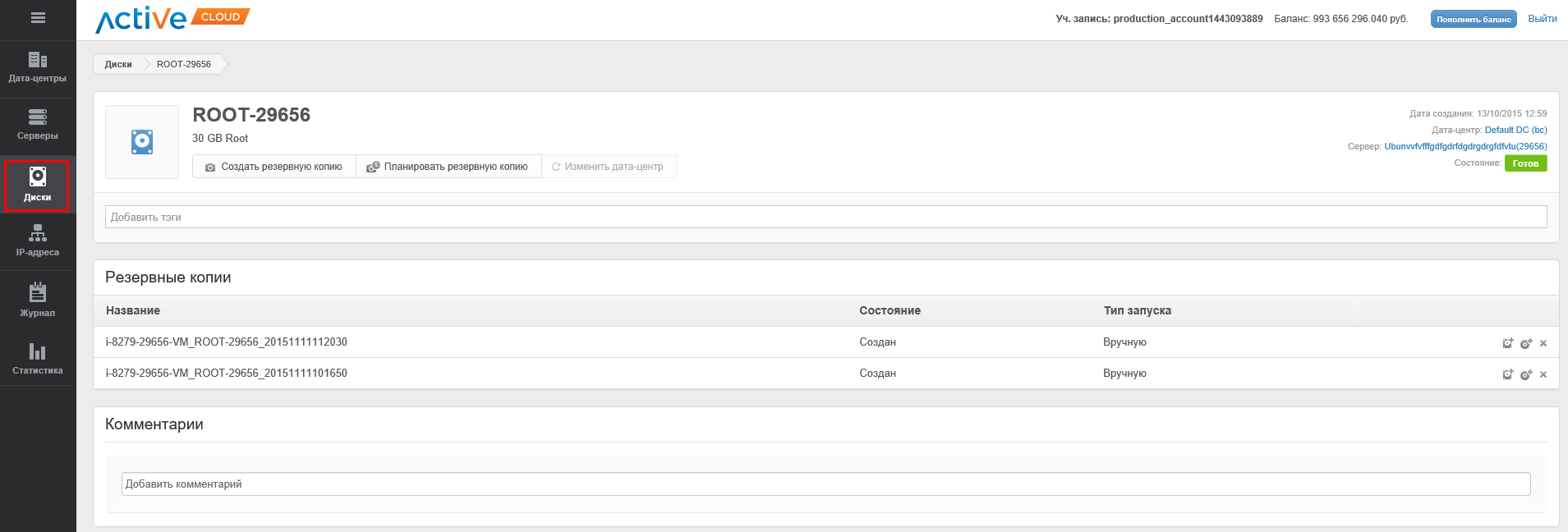 Дата-центр | Имя группы серверов (дата-центра), в которой размещен диск. |
