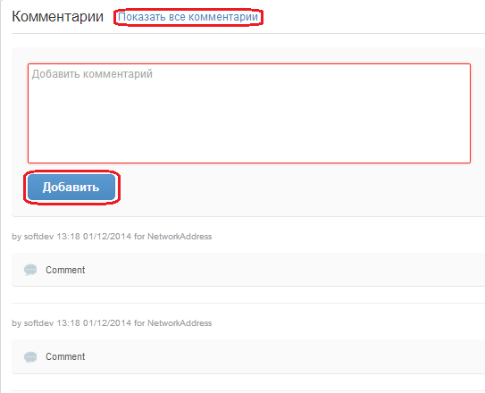 Область «Комментарии»