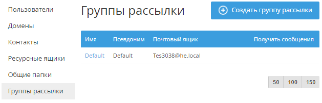 При заказе услуги «Microsoft Exchange» автоматически создается группа рассылки Default, которую нельзя удалить или изменить.