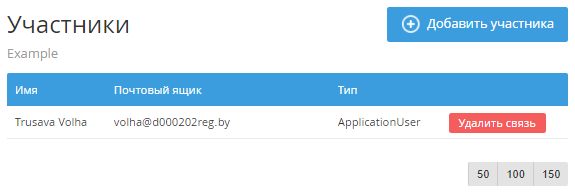 Если в группе рассылки нет ни одного участника, на экране отобразится надпись «Нет прикрепленных участников для группы рассылки». - Нажать на кнопку Добавить участника (над списком пользователей) или Прикрепить участника (в том случае, если прикрепленные к группе рассылки участники отсутствуют). На экране отобразится список почтовых ящиков, не привязанных к группе рассылки.