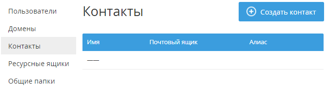 - В поле Почтовый ящик ввести адрес почтового ящика контакта.