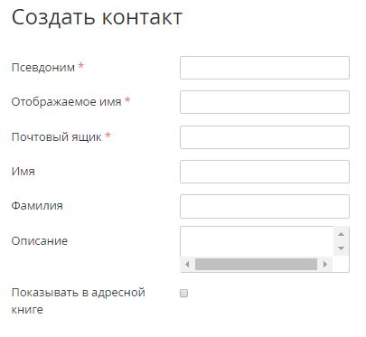 - Для отображения контакта в адресной книге установить флажок Показывать в адресной книге.
