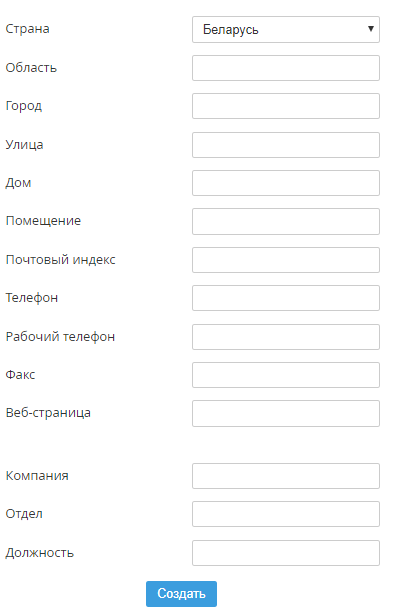 - Нажать кнопку Создать контакт. На экране отобразится форма Создать контакт.