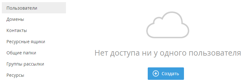 В том случае, если доступ к Услуге "Microsoft Exchange" еще не был предоставлен ни одному пользователю, на экране отобразится надпись «Нет доступа ни у одного пользователя».
