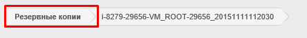 В верхнем левом углу страницы администрирования резервной копии диска находится навигационная панель, позволяющая в любой момент вернуться на главную страницу раздела Диски во вкладку Резервные копии, нажав на кнопку-ссылку Резервные копии.