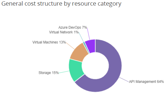 General cost structure by resource category — a doughnut chart where each segment shows the proportional value of resource consumption per resource category. The segments have labels with the resource category names and percent values.