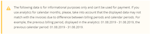 The Analytics section is used for analyzing monthly consumption of the Microsoft Azure resources by resource categories. The consumption data is for informational purposes only and cannot be used for payments.