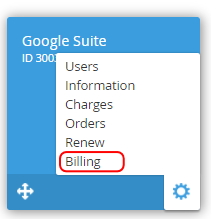Google Suite. "Billing" section