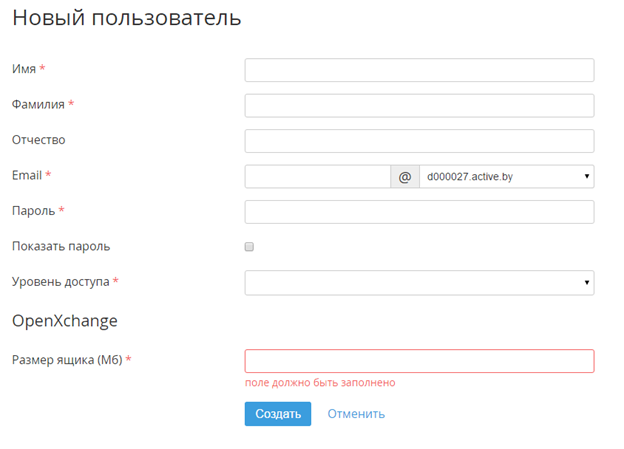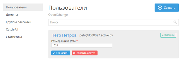 - Email size (Mb) - the maximum storage size of the user's mailbox.