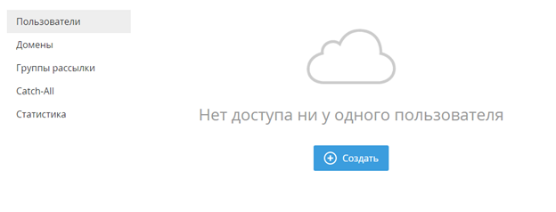 If there are no users with access to the service, the "You don't have any user attached yet" label is displayed. - Click the Create button. The New User creation form appears.