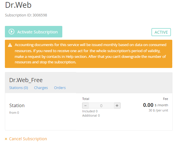 All Stations with the Running status receive the Stopped status. The status of deleted Stations does not change. The billing is stopped next day after Subscription cancellation.