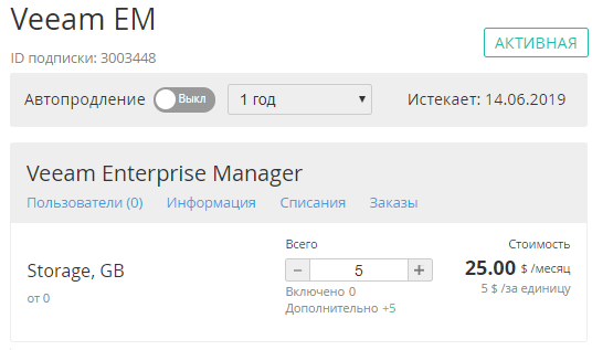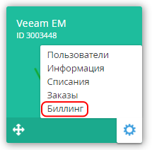 Раздел Биллинг предназначен для управления Подпиской на Услугу Veeam Backup Enterprise Manager.