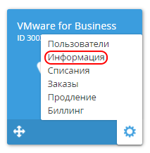 Раздел Информация содержит имя пользователя и пароль для входа в Панель управления vCloud Director, ID пользователя и организации (см. Вход в Панель управление "vCloud Director").
