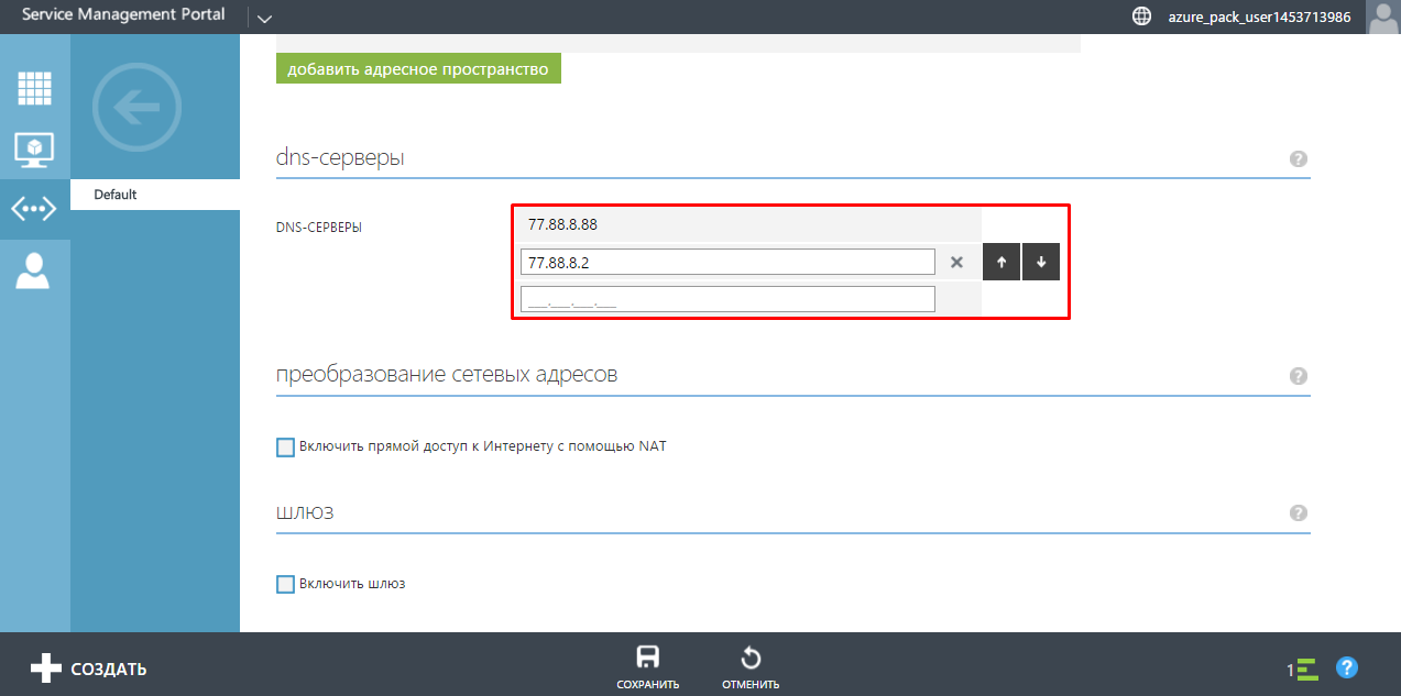 4.  В открывшейся области введите IP адрес DNS-серверов в поле "DNS-Серверы" (в примере использованы адреса DNS серверов Яндекс.DNS);