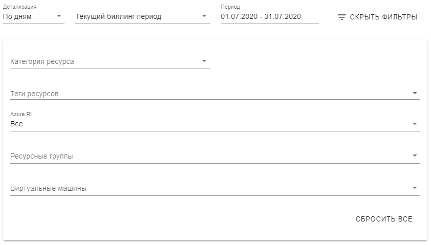 - В блоке фильтров доступен только фильтр Биллинг период: