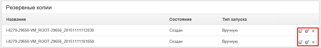 Кроме этого, здесь Вы можете осуществлять действия, связанные с резервным копированием дисков сервера: создать диск или шаблон на основе имеющихся резервных копий с выбранного диска.