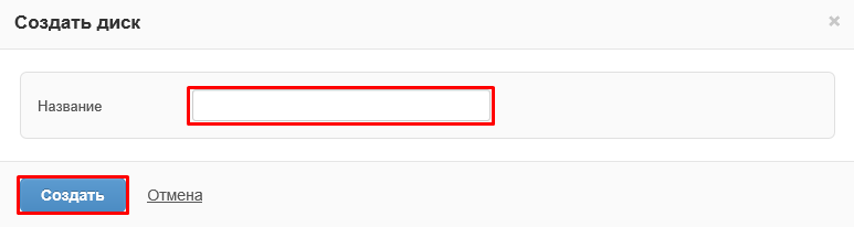 Для того чтобы создать новый диск на основе копии диска, нажмите на иконку с изображением значка диска  . В появившемся окне Создать диск введите Название для нового диска в соответствующее поле. Нажмите Создать.