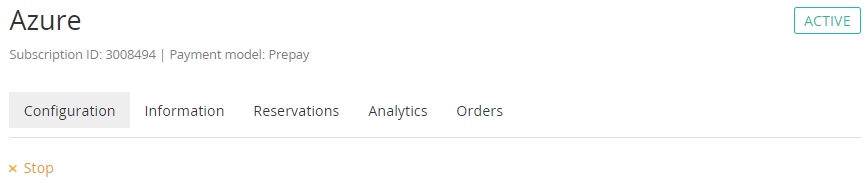 The Configuration section is used to manage the Microsoft Azure Subscription. To view the Configuration section: