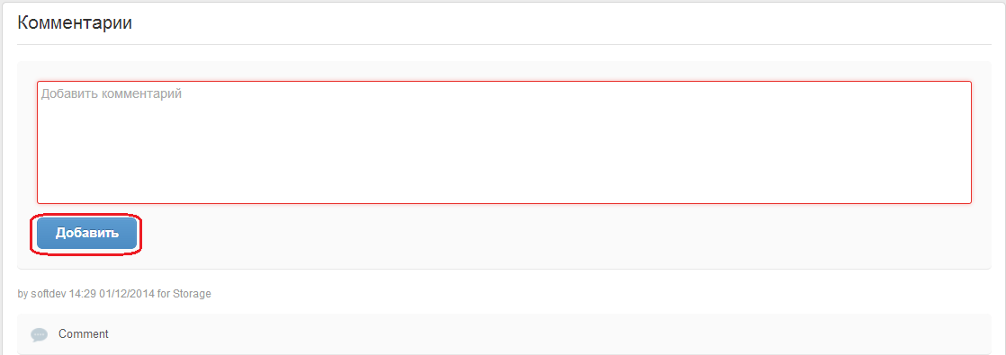 В данной области Вы можете ввести комментарий, относящийся к диску, введя текст в поле «Добавить комментарий». Введите текст комментария и нажмите на кнопку Добавить.