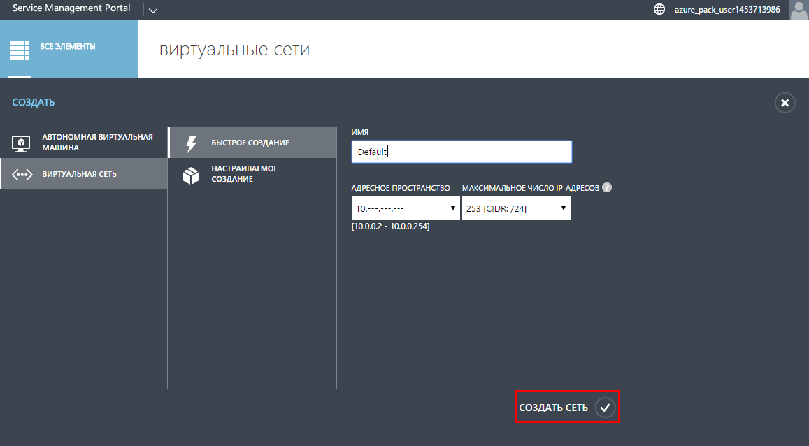 Для создания виртуальной сети выполните следующие действия: