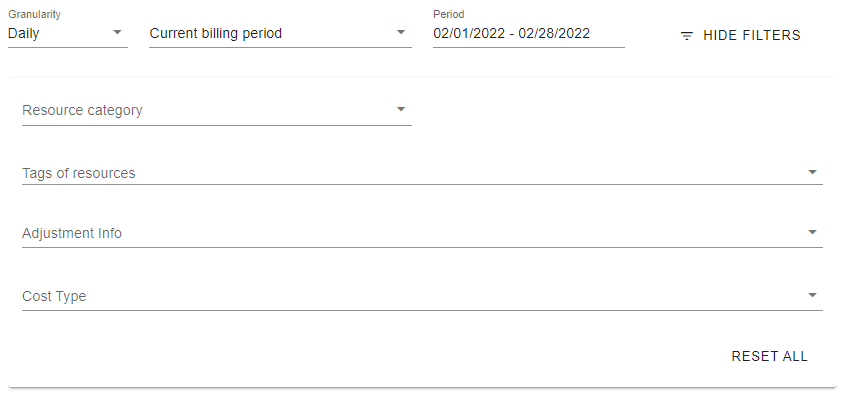 - In the section with filters, only the Billing period filter is available: