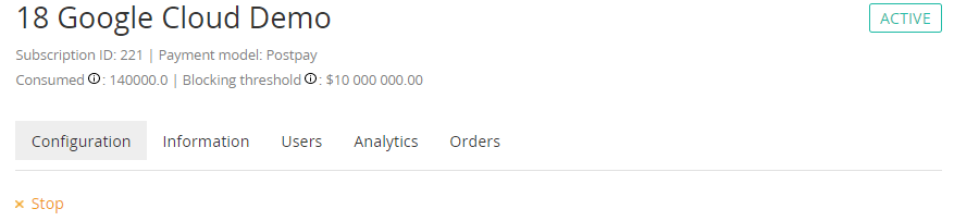The Configuration section is used to manage a Subscription. To view the Configuration section: