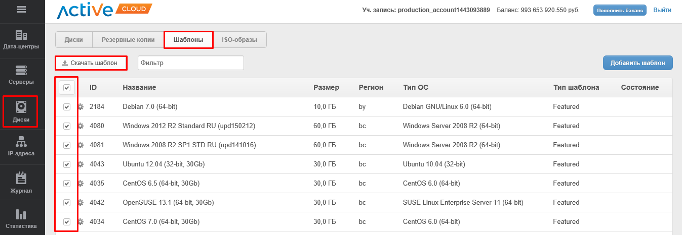 Групповые действия над шаблонами проводятся при выборе ВСЕХ либо только интересующих шаблонов при помощи кнопок выбора. Действия над отмеченными элементами производятся путем выбора требуемой команды в панели мульти-действий.