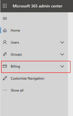 In the mode, the Preview switch has the Preview on name. - In the left navigational menu, go to Billing > Products & Services.