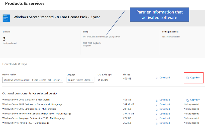 Get license keys for Microsoft Software Subscriptions